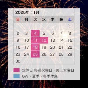 投稿日: 2025年10月31日2025年11月2日☆11月の定休日☆ 〇11月の定休日(毎週火曜日・第二水曜日) 4日(火)、11日(火)、12日(水)、18日(火)、25日(火) 皆様のご来店心よりお待ちしております!!